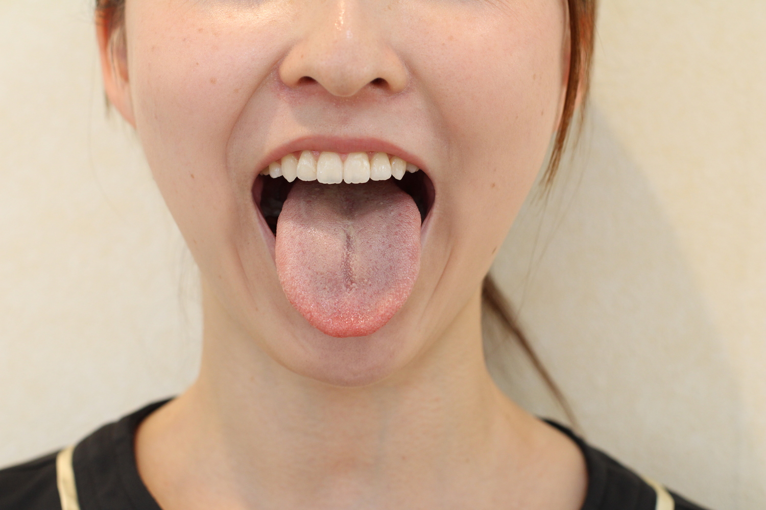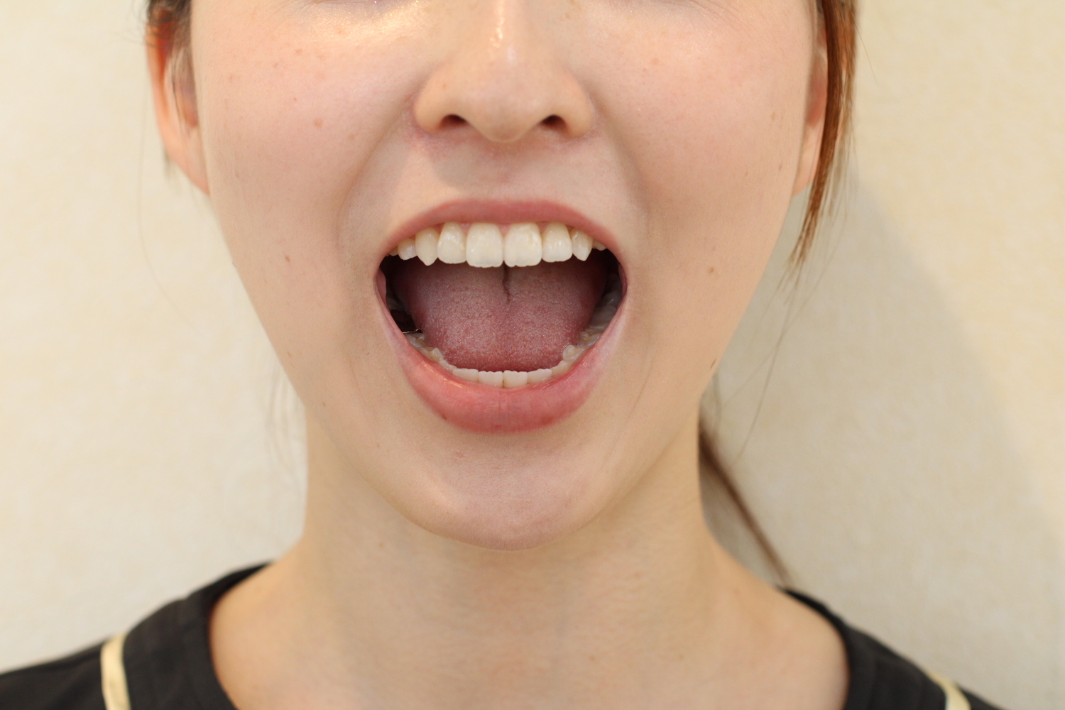 口呼吸をしている時、舌の位置は下がっています。舌は本来、上あごに付いていないといけないのですが、この間違った舌の動きにより歯ならびに影響が出るのです。